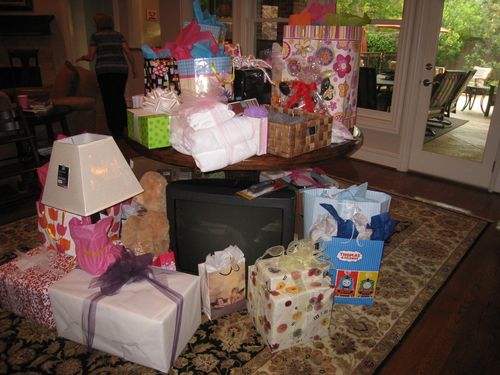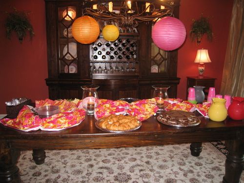 I attempted to decorate (not my gift), arranged the chairs, turned the music on, and a food angel brought wonderful food for us to enjoy. And then, gifts started arriving. There were gifts sent by women who couldn’t attend the event and gifts arriving as the guests arrived. The tabletop where the gifts were to be displayed was overflowing and only a few guests had arrived by this point. We had to start piling the gifts on the floor next to the table. The packaging was so pretty and festive and many had been completely creative with their gifts (you could tell some of them had done this kind of thing before).