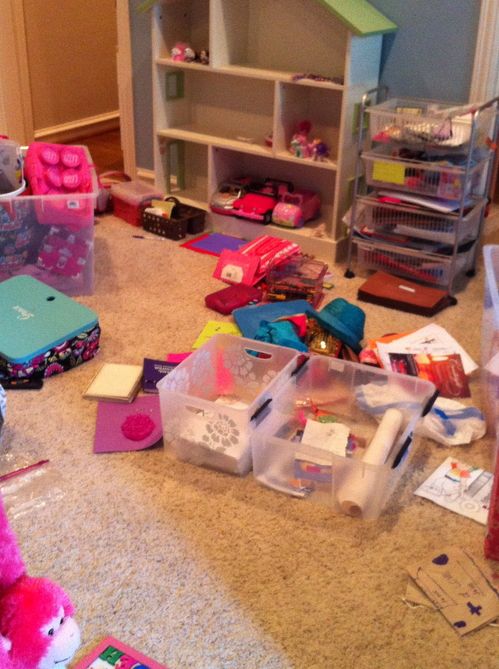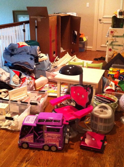 And yes, painting was the easy part. That went pretty quickly. However, once the paint dried, the madness had just begun. I had to get everything organized and back into her room because it was spilling into the landing and everyone was now tripping over it. As I sifted through her treasures, I was overwhelmed with the stuff she had. Every time I thought I was making headway, I found yet another bag full of stuff. I even found things she had been looking for, but couldn’t find…imagine that. I carried out four large bags of trash.