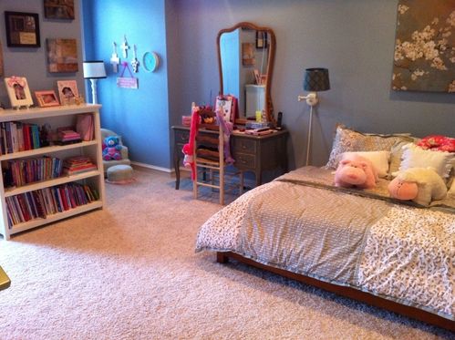 Her room recently looked as though a bomb went off in there. You couldn’t even see the ground. We thought that if there were a fire, she wouldn’t even be able to carve out an escape route. I tried to be the mean mom and tell her that no one was going to clean that room except for her. Well, after a week or two of this, we still didn’t see any positive result. In fact, it was just the opposite. There was now even more stuff. And, I was convinced that her disorganized room was causing her nightmares. So I tried to come up with a solution. I decided to redo her bedroom – fresh paint, new décor, and new paintings on the wall – the whole nine yards. Perhaps, giving her a fresh start would kick start her desire to keep it clean and organized. I also hoped that a clean room would help with her sleeping issues.