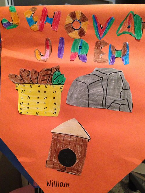 His class then moved on to Jehovah-Jireh. I loved this lesson because now my six year-old loves to clarify the difference between a need (which we actually have very little need of anything to survive – food, clothing, shelter) and a want (of which we have many). “Jehovah-Jireh” means the Lord Will Provide. In our flesh, we tend to cry out to creditors, friends, family, medical staff, etc. for our needs when in fact, the first person we should go to for anything is Jehovah-Jireh. He provides everything and all we need. (see also Genesis 22:8, 14; Isaiah 31:1; John 3:16; Philippians 4:19; James 1:17.) He is our great Provider.