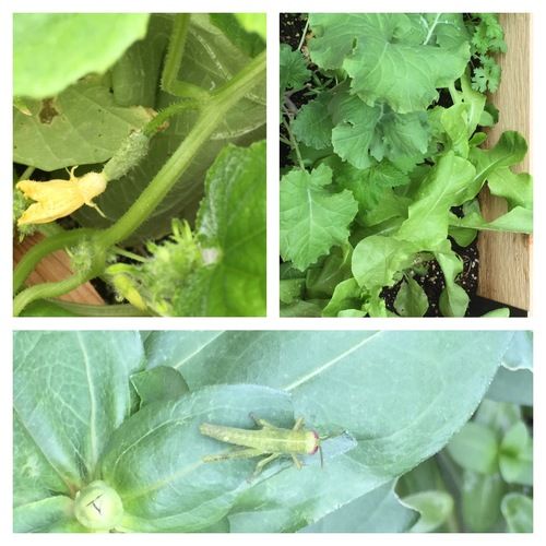 I continued to water, watch and wait until one day, I saw a small cucumber (looked like a little sweet gherkin actually) growing between the cucumber vine and the flower. I got a little giddy and told the children to come and see (it’s the small things in life, folks!). Every morning, I checked the cucumber plant to check on the progress. Each day it grew bigger and bigger and I noticed a couple more forming as well. I continued to check the other plants to see if there was anything growing forth from them, but not quite yet.