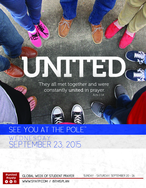 This past Wednesday, students (as well as parents and faculty) circled flagpoles on elementary, middle school, high school and college campuses around the world. They met in the wee hours of the morning before the school day officially started. They met to participate in the annual See You At The Pole™ event. This event, according to their website, was birthed out of a youth group in Burleson, Texas in 1990 – “As in all great movements of prayer, See You at the Pole™ did not begin in the hearts of people. It began in the heart of God. God used the obedience of a small group of teenagers to ignite what has become an international movement of prayer among young people.” This small event has grown to over 3 million students participating worldwide. (http://syatp.com)