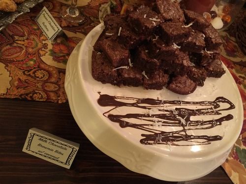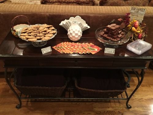 I also put my thirteen-year-old son to work yesterday. He’s homeschooling this year through our school’s virtual program, and we joke about the fact that many days in addition to his regular school curriculum, he’s getting real life experience. He helped set up, arrange the desserts (he’s artistic, and he made the brownies look way better than I would have!), and created fancy table cards for the food items.