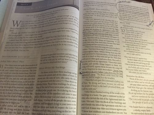 As I read the book of Deuteronomy, I am convicted of some past and current sin. This book has revealed to me my incredible gratefulness for God’s abundant love for me. While He knew every turn I was going to make before I even made it, He never took His eyes off of me. And not only did He see me, but God also made sure Jesus made a way for me. Reviewing these rules and regulations has also reminded me how perfect and sinless Jesus was as a man. Never did Jesus sin or stumble…even with all of these rules. Not once! His perfection is continually being worked out in me through the power of the Holy Spirit. If I keep my eyes on Him, I am always looking at His perfection, not my lack thereof.