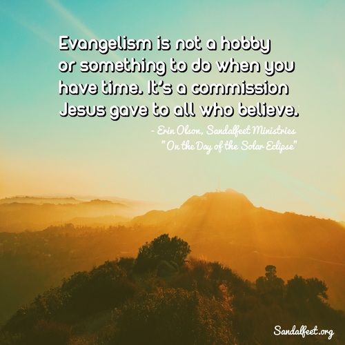 I struggled on Monday with how we approach God these days—the Creator and Sustainer who set the stars in the sky. The same one who caused the events of Monday to occur in all its miraculous glory is still working all things for His good. I felt guilty on Monday because I didn’t spend the day worshiping God (I was in awe for sure, but my day went on after the eclipse was over), and I thought a lot about what people in the Bible would have thought about a sign in the heavens. And then I realized, God is still doing a work. Someone far, far away would have never been able to connect with someone in America during Bible times. It wasn’t a possibility. In a way, this man was like the Ethiopian eunuch who was trying to understand God’s Word (Acts 8:26–40) or Nicodemus who approached Jesus during the night (John 3:1–21). If God provides an opportunity where someone is asking questions, we need to be ready to answer. How they respond is not up to us.